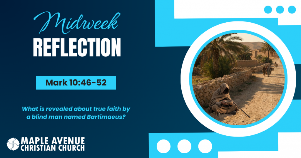 Matthew, Mark, and Luke all give account of Jesus restoring the blind man’s sight, but it is Mark who gives the man’s name – Bartimaeus (Mark 10:46). Jonathan pointed out to us that Bartimaeus’s blindness was physical, not spiritual. We know by several key facts in this passage.